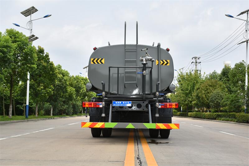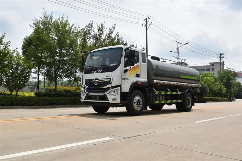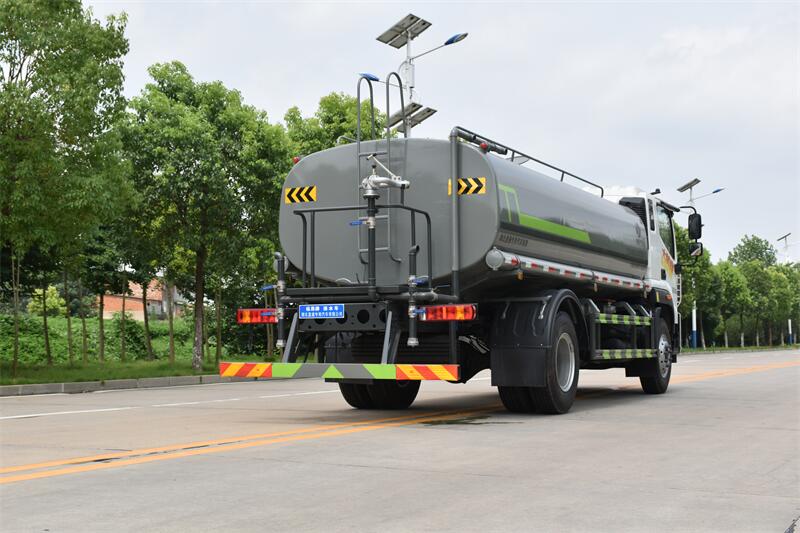 福田15噸灑水車標(biāo)配前噴(鴨嘴)、后沖、后灑、側(cè)噴、后置式工作 平臺,平臺上配置綠化水炮(可 360°旋轉(zhuǎn),既可以調(diào)成柱狀,也可 以調(diào)成霧狀,更可以調(diào)成直沖狀、大雨、中雨、小雨、毛毛雨),配 備優(yōu)質(zhì)大功率專用灑水泵(可自吸自排,可從河里或池塘抽水到罐體), 取力器,雜物過濾網(wǎng),消防接口,自流球閥系統(tǒng)、取力器、球閥、濾網(wǎng) 均為國家標(biāo)準(zhǔn)產(chǎn)品,主管道加粗,法蘭墊、法蘭盤加厚,大通徑球閥。 整體具備性能優(yōu)良安全可靠、效率高、流量大、維修方便等特點(diǎn)。 二.產(chǎn)品配置 1.底盤配置: 發(fā)動機(jī)玉柴 200 馬力(四缸),法士特 8 檔變速箱,軸距 4500,前 橋 4.5T,后橋 10T,10.00 鋼絲胎,斷氣剎,空調(diào),電動玻璃,ABS。