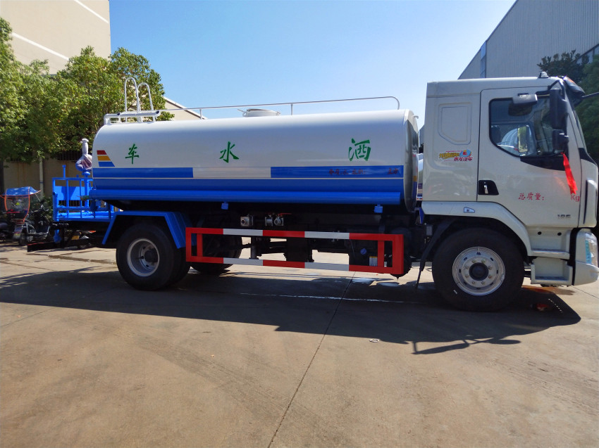 灑水車吸程≧7米,灑水寬度≧14-16米,射程≧25-40米,引水時間<5min,流量60m3/h。前沖(噴)、后灑、帶側噴(花灑)、帶后工作平臺、平臺上安裝綠化灑水高炮(炮噴射形狀可調節:直沖、大雨、中雨、毛毛雨、霧狀、可連續調節,360°旋轉),配消防接口,自流閥,濾網,帶自吸自排功能。配備大功率專用灑水泵,泵可自吸自排,安裝過濾網,帶消防接口,可通過消防栓進水,帶自流閥,隨車選裝20米綠化卷盤,可噴灑農藥,罐體金屬漆。罐體有橢圓和方圓罐兩種,可根據用戶的要求定做