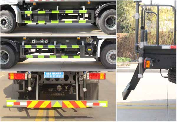 該車主要用于城鄉園林綠化噴灑作業;主要裝置為罐體及噴灑裝置.罐體總容量:11.8立方米,罐體有效容積:11.24立方米;介質:丙酮水溶液,密度950千克/立方米,罐體外形尺寸(長×長軸×短軸)(mm):5000×2360×1450.ABS系統生產廠家及型號分別為:西安正昌電子股份有限公司(型號:ZQFB-V).側、后防護材料均為:Q235碳鋼,連接方式均為:螺栓連接,后部防護截面尺寸(mm):120×50,后部防護離地高度(mm):470.僅采用底盤4500mm,4700mm軸距改裝.選裝前部不帶電子霧炮,選裝電子霧炮樣式.當前部不帶電子霧炮時,車輛長度8350mm,無前伸;當前部選裝電子霧炮時,車輛長度8850mm,前伸500mm.選裝大工作平臺,選裝后部噴灑裝置樣式.后軸僅采用鋼板彈簧懸架.選裝后部箭頭燈裝置,選裝后部弧形噴灑裝置,選裝自動球閥安裝位置,選裝油箱電瓶安裝位置.后部作業燈僅在作業時開啟,車輛行駛過程中不可開啟.隨底盤選裝駕駛室.