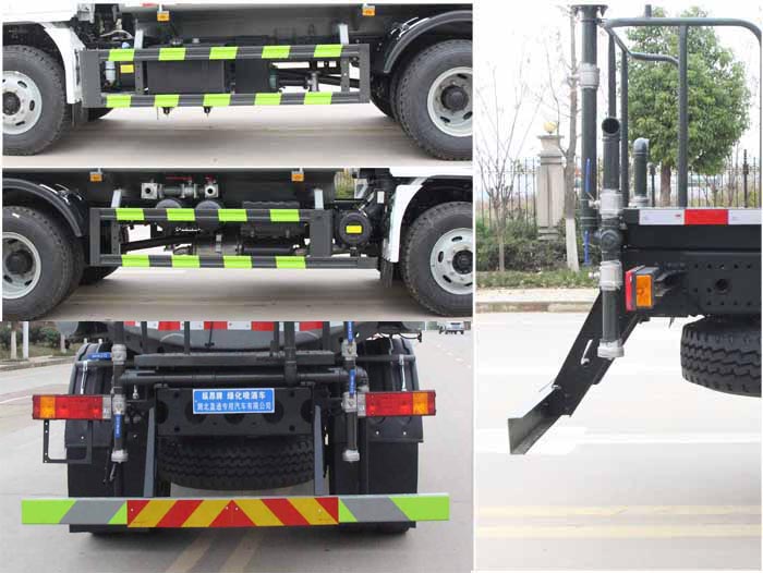 該車主要用于城鄉園林綠化噴灑作業;主要裝置為罐體及噴灑裝置.罐體總容量:11.7立方米,罐體有效容積:11.16立方米;罐體外形尺寸(長×長軸×短軸)(mm):4200×2450×1650,4000×2450×1730.ABS系統生產廠家及型號分別為:西安正昌電子股份有限公司(型號:ZQFB-V).側、后防護材料均為:Q235碳鋼,連接方式均為:螺栓連接,后部防護截面尺寸(mm):120×50,后部防護離地高度(mm):470.僅采用底盤4000mm軸距改裝.選裝前部不帶電子霧炮,選裝電子霧炮樣式.當前部不帶電子霧炮時,車輛長度7850mm,7600mm,無前伸;當前部選裝電子霧炮時,車輛長度8350mm,8100mm,前伸500mm.選裝大工作平臺,選裝后部噴灑裝置樣式.后軸僅采用鋼板彈簧懸架.選裝噴灑裝置樣式,選裝后部箭頭燈裝置,選裝后部弧形噴灑裝置,選裝自動球閥安裝位置.后部作業燈僅在作業時開啟,車輛行駛過程中不可開啟.隨底盤選裝油箱電瓶安裝位置.隨底盤選裝駕駛室.