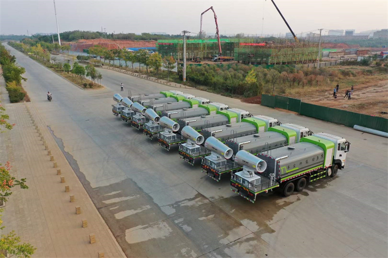 一. 產(chǎn)品簡述 抑塵車又稱為綠化噴灑車、多功能灑水車、園林綠化灑水車。抑 塵車適合于各種路面沖洗,樹木、綠化帶、草坪綠化,道路、廠礦企業(yè) 施工建設(shè),高空建筑沖洗。抑塵也可以作為運水車使用,最常見的車 型有綠化噴灑車、多功能灑水車、綠化灑水車幾大類。 我公司產(chǎn)品標配前噴(鴨嘴)、后沖、后灑、側(cè)噴、后置式工作 平臺,平臺上配置綠化水炮(可 360°旋轉(zhuǎn),既可以調(diào)成柱狀,也可 以調(diào)成霧狀,更可以調(diào)成直沖狀、大雨、中雨、小雨、毛毛雨),配 備優(yōu)質(zhì)大功率專用灑水泵(可自吸自排,可從河里或池塘抽水到罐體), 取力器,雜物過濾網(wǎng),消防接口,自流球閥系統(tǒng)、取力器、球閥、濾網(wǎng) 均為國家標準產(chǎn)品,主管道加粗,法蘭墊、法蘭盤加厚,大通徑球閥。 整體具備性能優(yōu)良安全可靠、效率高、流量大、維修方便等特點。