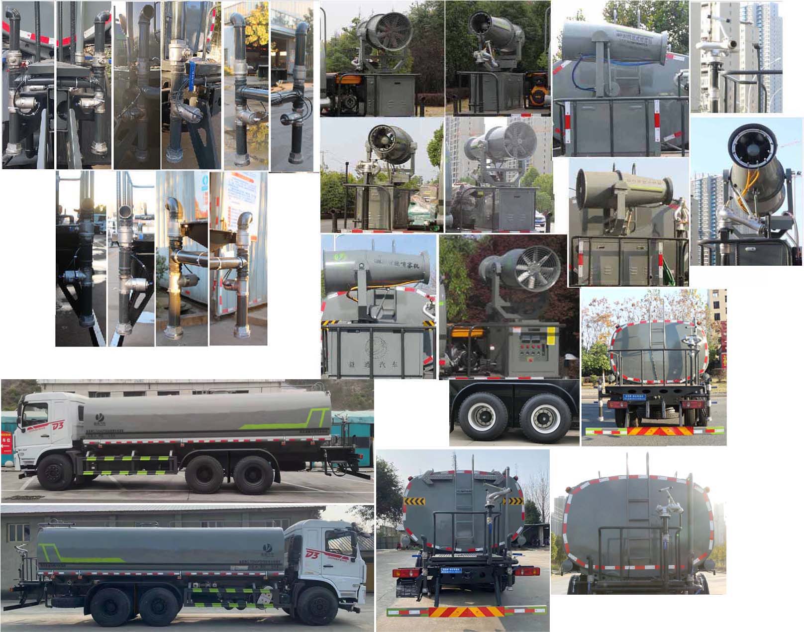 我公司產(chǎn)品標配前噴(鴨嘴)、后沖、后灑、側(cè)噴、后置式工作 平臺,平臺上配置綠化水炮(可 360°旋轉(zhuǎn),既可以調(diào)成柱狀,也可 以調(diào)成霧狀,更可以調(diào)成直沖狀、大雨、中雨、小雨、毛毛雨),配 備優(yōu)質(zhì)大功率專用灑水泵(可自吸自排,可從河里或池塘抽水到罐體), 取力器,雜物過濾網(wǎng),消防接口,自流球閥系統(tǒng)、取力器、球閥、濾網(wǎng) 均為國家標準產(chǎn)品,主管道加粗,法蘭墊、法蘭盤加厚,大通徑球閥。 整體具備性能優(yōu)良安全可靠、效率高、流量大、維修方便等特點。