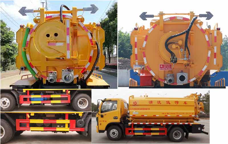 清洗吸污車該車用于下水道排污及疏通,專用裝置:罐體、吸污泵、清洗沖刷總成;罐體外形尺寸(總長×直徑)(mm):3850×1450(前部1050mm為清水罐,后部2800mm為污水罐);污水罐總容量:3.94立方米,污水罐有效容積:3.75立方米,介質:液態污物,密度800千克/立方米;罐體兩側不規則箱體也為清水罐,尺寸為(長×寬×高(mm):3500×560×1000,清水罐總容量:3.15立方米,清水罐有效容積:3立方米,介質:水,密度1000千克/立方米,清水罐和污水罐為獨立罐體,清洗功能時用清水罐,吸污功能時用污水罐,污水罐和清水罐不可同時滿載,兩罐不能同時滿載使用;ABS型號/廠家:ABS型號:ABS/ASR-24V-4S/4M,廠家:襄陽東風隆誠機械有限責任公司.選裝限速裝置時,限速80km/h。側/后防護材料Q235碳鋼,側防護采用螺栓連接,后防護采用焊接連接,后防護截面尺寸(寬×高)(mm)50×120,后部防護離地高度(mm):400.隨底盤選裝駕駛室,選裝左右油箱安裝位置..選裝車輛側面樣式.選裝后部卷盤樣式,選裝吸污口樣式.僅采用底盤3390mm軸距改裝,該車具有舉升功能.