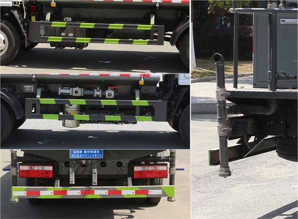 東風福瑞卡5方灑水車罐體約為 5 方,可加裝 30 型霧炮 2、邊燈帶電,罐體尾部上方標配 2 個紅色示寬燈, 3、標配前噴為鴨嘴直沖,標配后沖,用戶可根據自己的需求,來調 整對沖位置。 4、花紋防滑平臺,炮筒后蓋為定制型螺栓卡扣, 5、前噴、后沖、后灑、側噴,綠化高炮開關球閥均采用 50 大通經 不銹鋼球閥, 6、新式軸承式水炮,更加耐用, 7、40-50 型水泵, 8、防腐法蘭墊片, 9、鋁制后灑,不易炸開 10、罐體自動焊(美國林肯焊機及電源),拼板自動焊接,封頭環 縫焊接,無氣孔,焊縫美觀。 11、側護網、后保險杠、均為螺栓連接,方便拆卸,維修方便。 12、塑料擋泥板,替代鐵擋泥板,更加輕便,用螺栓連接,方便拆 卸。 13、前部、后部主管連接處為 6 孔圓法蘭,不易沖墊