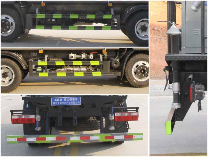 該車主要用于城鄉園林綠化噴灑作業;主要裝置為罐體及噴灑裝置.罐體總容量:7.35立方米,罐體有效容積:7立方米;罐體外形尺寸(長×長軸×短軸)(mm):4000×2000×1320.介質:丙酮水溶液;介質密度(千克/立方米):950.側、后防護材料均為:Q235碳鋼,連接方式均為:螺栓連接,后部防護截面尺寸(mm):120×50,后部防護離地高度(mm):450.ABS型號/廠家:ABS型號:ABS/ASR-24V-4S/4M,廠家:襄陽東風隆誠機械有限責任公司.選裝前部電子霧炮樣式.選裝前部不帶電子霧炮.當前部不帶電子霧炮時,車輛長度7300mm,無前伸;當前部選裝電子霧炮時,車輛長度7800mm,前伸500mm.僅采用底盤3800mm軸距改裝.隨底盤選裝限速裝置時最高車速為:89km/h.選裝前部鴨嘴,選裝后部箭頭燈裝置,選裝罐體頂部高位花灑裝置及方形罐口裝置,選裝自動球閥安裝位置,選裝工具箱裝置,選裝后部噴灑裝置樣式.隨底盤選裝駕駛室.