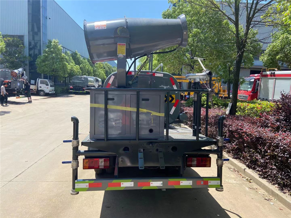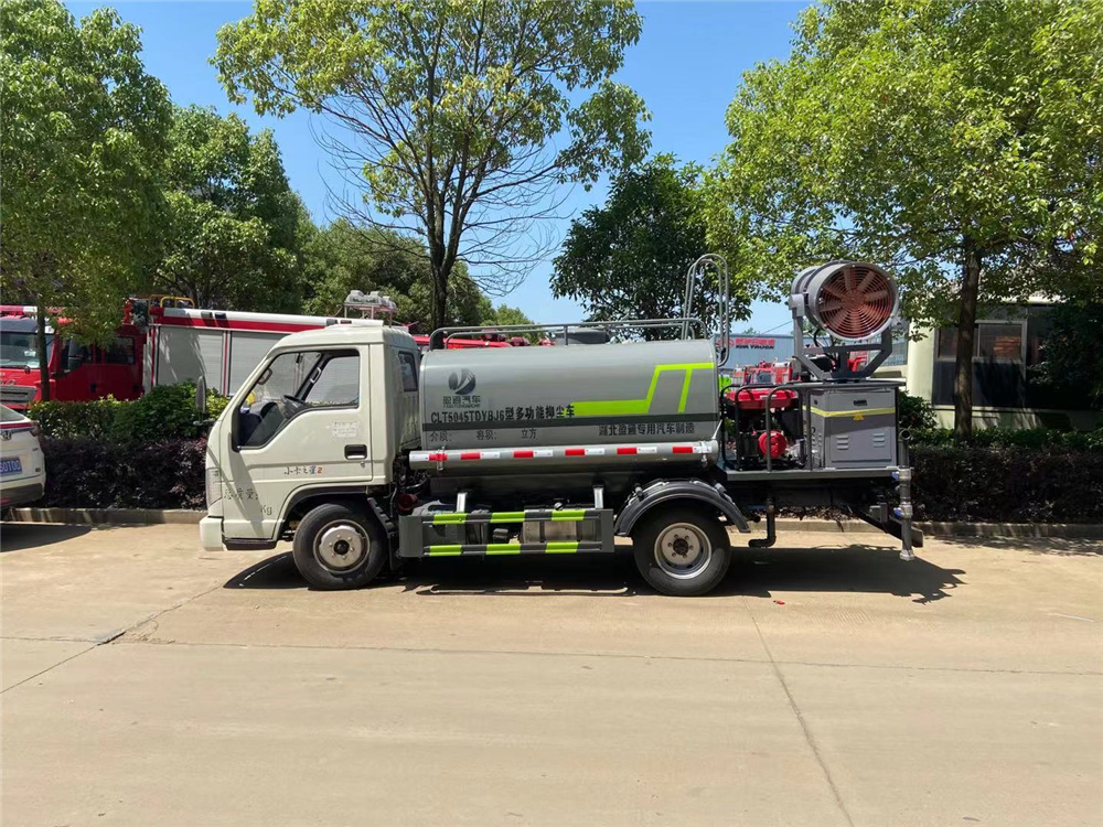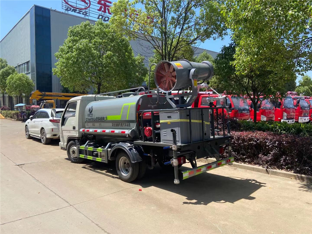專用功能配置:罐體實際容積約為2.8立方米,采用武鋼優質碳鋼板卷壓成型。配備專用灑水泵,自吸自排,前噴后灑、后對沖、側噴、后工作平臺及灑水高壓炮。灑水泵自吸高度為6米左右,整車灑水寬度14米左右,后工作平臺水炮可調成:直沖狀、大雨、中雨、小雨、霧狀、有效射程≥28米,整車帶接頭、水位計,自流閥及自吸功能。后平臺主管道有一個一寸的澆花接口,附送2根3米水管,1個爬梯,兩側及后保險杠。