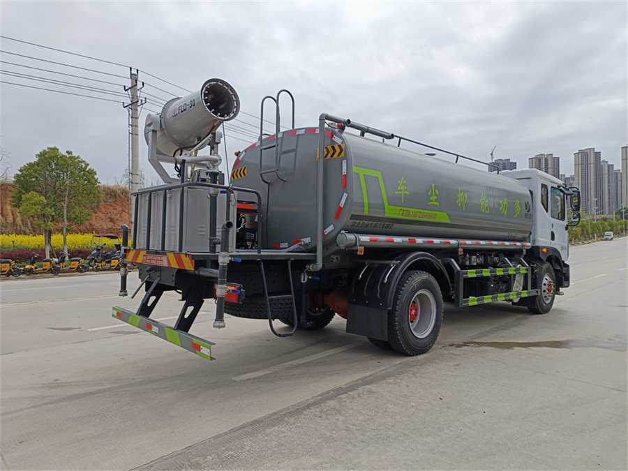 灑水車產品簡述:縱昂牌 CLT5181TDYEQ6 型多功能抑塵車標配前噴(鴨嘴)、后對沖、 后灑、側噴、后置式工作平臺,平臺上配置綠化水炮(可 360°旋轉,既可以調 成柱狀,也可以調成霧狀),配備優質大功率專用灑水泵(可自吸自排,可從河 里或池塘抽水到罐體),取力器,雜物過濾網,消防接口,自流球閥系統、取力 器、球閥、濾網均為國家標準產品,主管道加粗,法蘭墊、法蘭盤加厚,大通徑 球閥。整體具備性能優良安全可靠、效率高、流量大、維修方便等特點