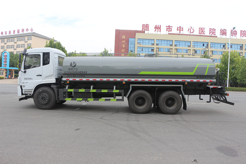 上裝20噸灑水車價格報價 東風灑水車生產廠家配置過硬:罐體采用5mm厚武鋼專用容積板制作。罐體焊接采用CO2氣體保護自動焊接,質量可靠,外型美觀。罐體顏色可以噴成上白下藍,也可以噴成銀灰銀藍。罐體截面形狀為橢圓形,內部多倉室結構,用防波板隔開。罐體頂部開有入孔,可作檢修進出口,也可作加水孔。罐前量管(觀察罐內水位)、罐后爬梯、罐上罐口帶簡易護欄帶自流閥,消防接口。帶自吸泵,可直接從池塘吸水或連接消防栓注水。一次作業時間長,無須頻繁加水。電、液、氣集中控制,人機操作界面方便靈活,可在駕駛室內完成各種操作。