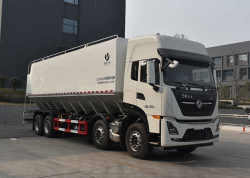 該車用于散裝飼料的運輸,主要專用裝置為飼料倉和倉內卸料作用的絞龍機構,卸料方式:電動或液壓絞龍卸料。罐體有效容積:34.63立方米,介質:膨化及顆粒飼料,粉料,罐體外形尺寸(mm):9000×2530×2530;側防護裝置,材料:Q235碳鋼,連接方式:螺栓連接;后下部防護裝置,材料:Q235碳鋼,連接方式:焊接,截面尺寸(mm):120×50,離地高度:470mm;隨底盤選裝駕駛室,后處理選裝不同外形結構,;ABS型號/生產企業:ABS 8/東科克諾爾商用車制動系統(十堰)有限公司。安裝具有衛星定位功能的行駛記錄儀;發動機/油耗申報值(L/100km)L9NS6B360/36.9,L9NS6B400/36.9,DDi11E385-60/37.2,DDi11E430-60/37.2,DDi11E465-60/37.2.選裝ETC裝置。選裝限速裝置,限速89km/h。選裝后部樣式。