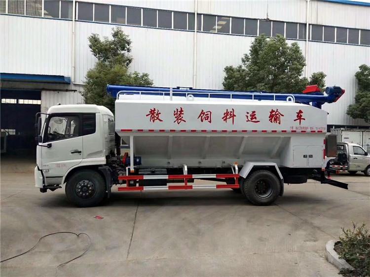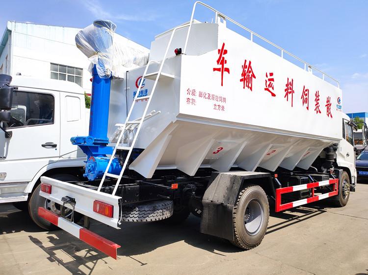 東風天錦單橋散裝飼料車上裝配置:罐體材質采用4mm優質碳鋼板,整車3條絞龍,有3個5.5KW電機(萬邦 西門子)帶動,頂部絞龍液壓控制舉升,可左右旋轉180°,罐體可根據用戶要求做多個獨立分倉,可獨立控制各分倉卸料順序和速度,卸料管傾斜60度,垂直卸料高度8.5米,整車卸料完用時20分鐘。(絞龍長度 6.86X 三角函數0.87+整車高度-500=垂直卸料高度)