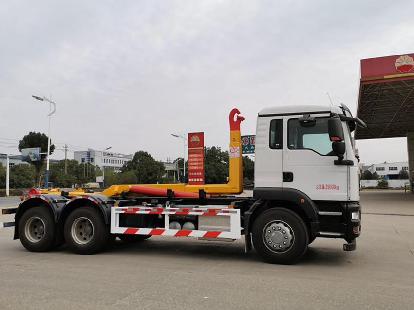 重汽汕德卡后雙橋勾臂式垃圾車,濰柴270馬力,G5-M系列駕駛室,軸距:4300+1350,9檔變速箱,5.5噸前橋,11噸雙后橋,280大梁,11.00R20鋼絲胎,300L鋁合金油箱,四通道ABS,博世方向機,氣囊座椅,電動玻璃,中控鎖,搖控鑰匙,可調節多功能方向盤,電動調節帶加熱后視鏡。勾臂式垃圾車公告、環保齊全。