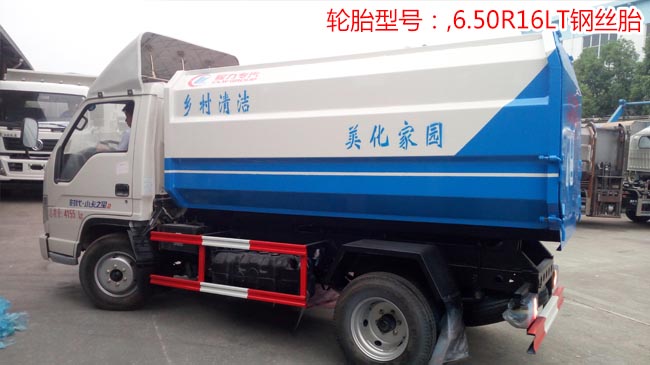 福田小卡之星掛桶式垃圾車,小卡之星2車身、1700mm寬駕駛室、單排前翻、全柴88馬力發動機,5檔變速箱、6.50R16鋼絲胎、帶動力轉向、ABS、可調方向盤、電控熄火。