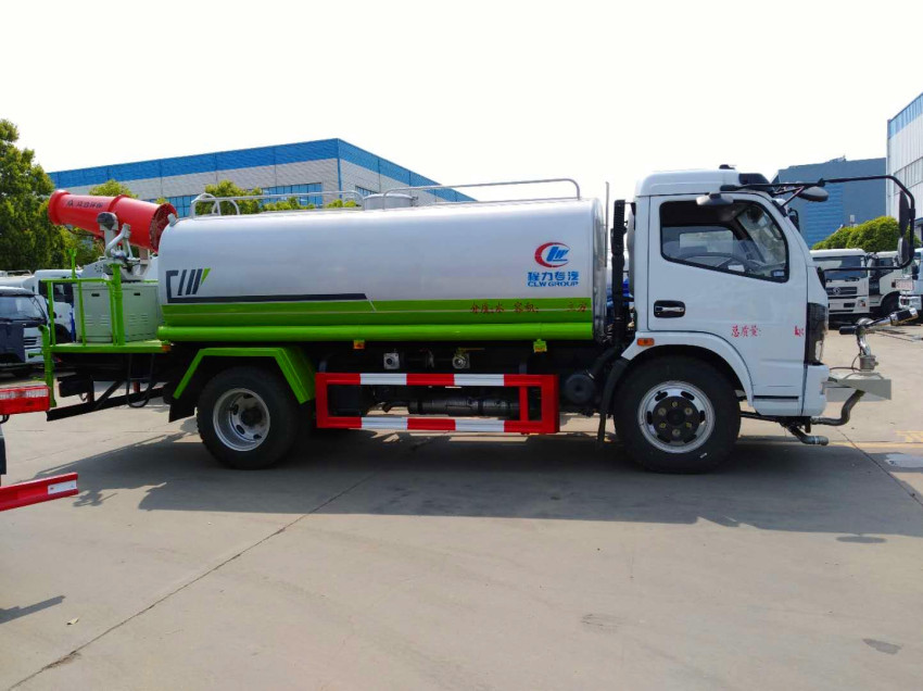 上裝配置:罐體采用武鋼5mm厚優質碳鋼鋼板,內置防浪板,避免車輛急剎時液體前涌造成的安全隱患,罐體頂部開有人孔。人孔既可以作為工作人員進行罐內檢修的進出口,也可以作為加水孔用于向罐內加注水,泵進泵出,消防栓接口,前沖、后灑、側噴、后工作平臺帶綠化水炮,垂直吸程≧7米,灑水寬度≧14米,射程≧28米,引水時間<5min,流量90m3/h。自流閥、濾網、帶自吸自排功能。兩根等長輸水管,金屬漆,其余標配。可選裝霧炮機灑水車:30米、40米、50米、60米、70米、80米、100米、120米等以上的霧炮機。