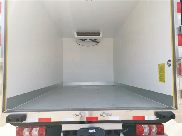 采用斷橋隔熱工藝,整體框架結構制作,廂體內、外壁材料為玻璃鋼板,采用高密度保溫層,廂板內帶有骨架,廂體厚度80mm,門框,門飾件、包角全部使用不銹鋼材質。最新款鋁合金包邊型材,廂體內采用LED照明燈及廂體示寬燈;門框密封條為橡膠材質,后門梁帶加厚防撞塊,加厚型不銹鋼鉸鏈及鎖件。車體副梁采用510L高強度鋼制作,底板為塑鋼花紋板,車廂后門帶一個上車扶手,其余標配;