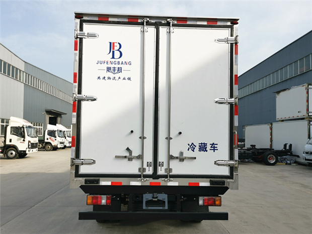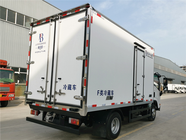 國六慶鈴KV100藍牌冷藏車廂體配置為:采用斷橋隔熱工藝,整體框架結構制作,廂體內、外壁材料為玻璃鋼板,采用高密度保溫層,廂板內帶有骨架,廂體厚度80mm,門框,門飾件、包角全部使用不銹鋼材質。最新款鋁合金包邊型材,廂體內采用LED照明燈及廂體示寬燈;門框密封條為橡膠材質,后門梁帶加厚防撞塊,加厚型不銹鋼鉸鏈及鎖件。車體副梁采用510L高強度鋼制作,底板標配為塑鋼花紋板,可選鋁花紋板或者不銹鋼花紋板,車廂后門帶一個上車扶手,其余標配;