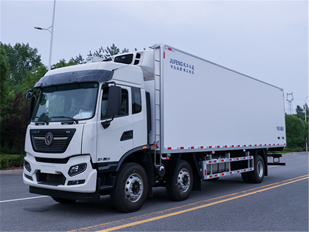 東風天錦8米6冷藏車冷機配置:可選安裝颶豐,凱利,凱雪,冷王,開利等冷藏機組,最低溫度可達-18度。車廂內溫度可根據需求自由調節;溫度控制器安裝在駕駛室內,方便操作控制。選裝配置:通風槽,肉鉤導軌,卡槽等。