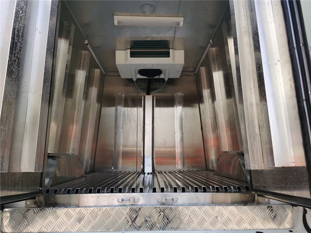 江鈴福特全順V348疫苗冷鏈車車廂配置:廂體采用內(nèi)外優(yōu)質(zhì)玻璃鋼板,內(nèi)膽圓弧式廂體,地板為鋁花紋板,底板和四周廂板加裝通風槽,不銹鋼門框,鎖件,標配通風槽,溫濕度顯示記錄儀,微型打印機等。