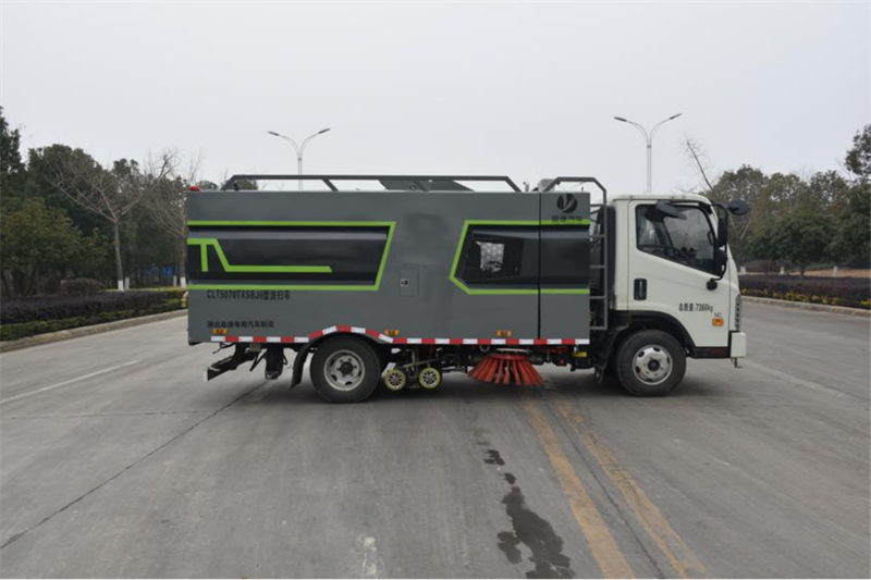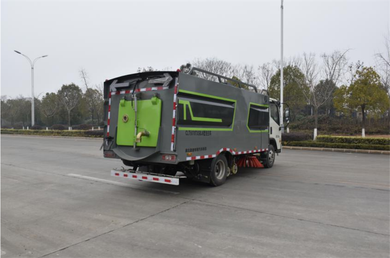 福田小型洗掃車該車用于清掃、清洗路面垃圾,主要裝置為箱體及洗掃系統.側面防護由專用裝置替代.后防護裝置材料為:Q235碳鋼,連接方式為:螺栓連接,后部防護截面尺寸(mm):120×50后防護離地高度為400mm.ABS系統型號:ABS-VI.E;生產企業:廣州瑞立科密汽車電子股份有限公司.ABS系統型號:ABS-E;生產企業:威伯科汽車控制系統(中國)有限公司.選裝樣車側面樣式.選裝前部電子霧炮樣式.選裝前部不帶電子霧炮.當前部不帶電子霧炮時,車輛長度7180mm,無前伸;當前部選裝電子霧炮時,車輛長度7680mm,前伸500mm.