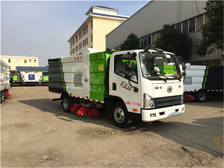 解放虎V5方掃路車 采用解放(軸距3300)國五二類底盤改裝,加裝副發動機、風機、清水箱、垃圾箱、左右立掃、后置吸盤,掃盤降塵系統,液壓系統、專用裝置電控系統和副車架等改裝而成(可加裝前沖后灑)。