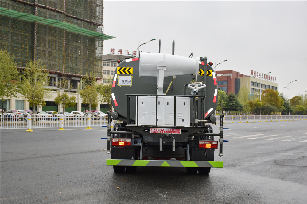 用功能配置:罐體實際容積約為12--14--16立方米采用武鋼優質碳鋼板卷壓成型,自動焊接配備專用灑水泵,自吸自排,前噴后灑側噴后工作平臺及灑水高壓炮灑水泵自吸高度為6米左右整車灑水寬度14米左右,后工作平臺高壓水炮上下左右360°旋轉可調成:直沖狀大雨中雨、霧狀有效射程28米,整車帶接頭水位計,自流閥后工作平臺主管路帶1寸澆花接口,附送2根3米水管,1個爬梯,兩側及后保險杠。