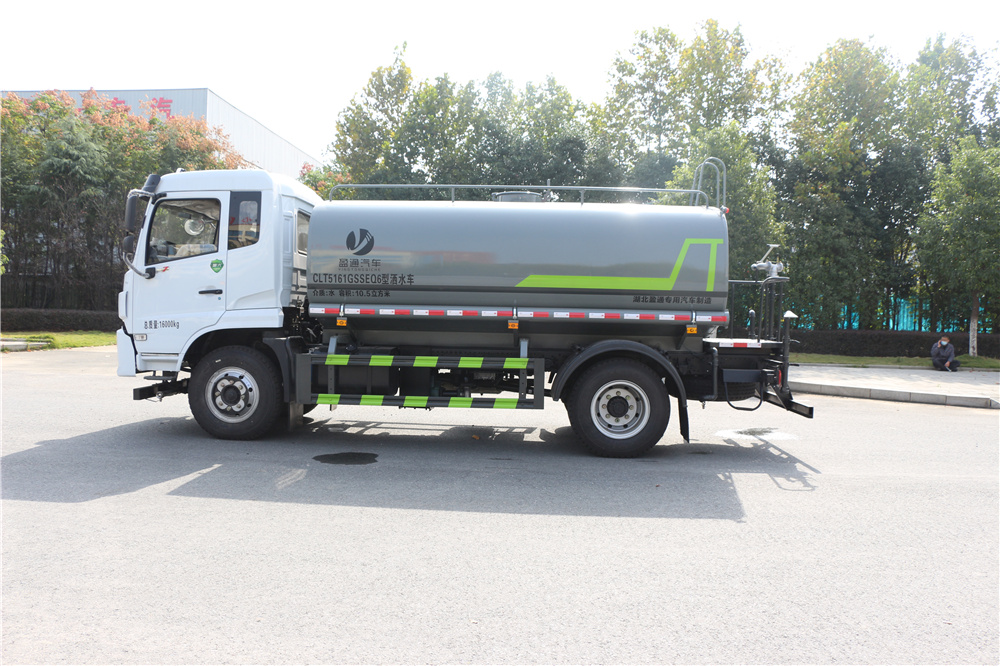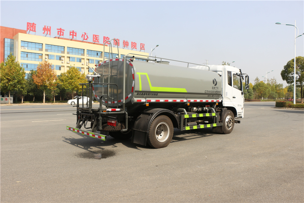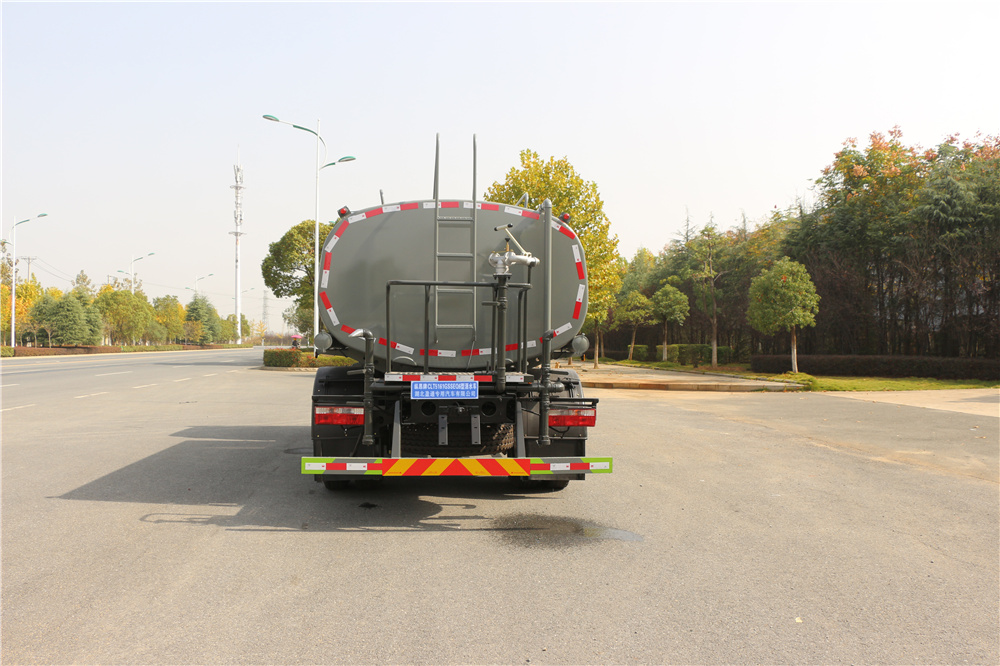 • 專用功能配置:罐體實際容積12.立方米,采用武鋼優質碳鋼板卷壓成型配備專用灑水泵,自吸自排。前噴后灑側噴、后工作平臺及灑水高壓炮。灑水泵垂直自吸高度為6米左右,整車灑水寬度14米左右,后工作平臺水炮可調成:直沖狀、大雨、中雨、小雨、毛毛雨,有效射程28,整車帶接頭、水位計,自流閥。后工作平臺主管道有一個一寸的澆花接口,附送23米水管,1個爬梯,兩側及后保險杠。