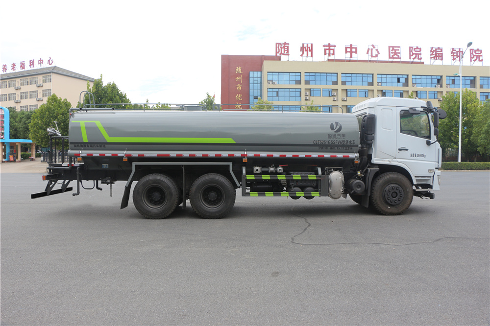 整車說明:該車主要用于城鄉園林綠化,路面噴灑,除塵和降溫;主要裝置為水罐及噴灑裝置;隨底盤選裝駕駛室;罐體有效容積:15.17立方米;罐體外形尺寸(長×長軸×短軸)(mm):6900×2370×1360;側后防護情況:側、后防護材料均為:Q235碳鋼,連接方式均為:螺栓連接,后部防護截面尺寸(mm):120×50,后部防護離地高度(mm):460;ABS型號/生成廠家:3631010-C2000/東科克諾爾商用車制動系統(十堰)有限公司。選裝附件布局。