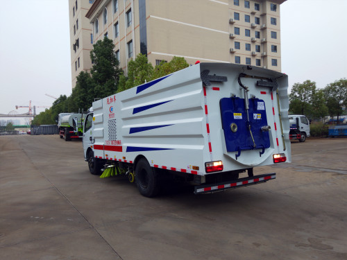 洗掃車具有路面清洗、路面清掃 路緣和路緣石立面洗刷、低壓沖洗、噴霧除塵等多功能。有“全洗掃”、 “左洗掃”、 “右洗掃”、 “全掃”、 多種作業模式可選擇。選擇“全洗掃”模式清洗廣場和路面,清洗效率高效果好,洗凈率達95%以上。選擇“左洗掃”或“右洗掃”模式清洗路面和路緣 。需要進行路面清掃或路面保潔作業時,可選擇掃路模式。需要可選擇掃路模式。需要噴霧除塵時,可開啟噴霧裝置,進行噴霧除塵作業。可以像灑水車一樣對路面進行低壓沖洗作業。