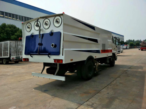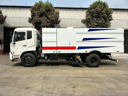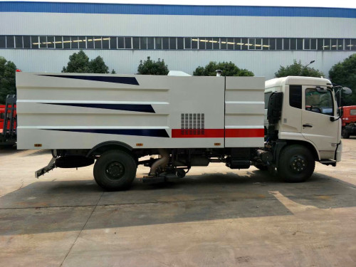 該掃路車采用東風天錦型國五二類底盤改裝,加裝副發(fā)動機、風機、清水箱、垃圾箱、左右立掃、后置吸盤,掃盤降塵系統(tǒng),液壓系統(tǒng)、專用裝置電控系統(tǒng)和副車架等改裝而成(可加裝前沖后灑,可以根據客戶要求做成方形、圓形箱