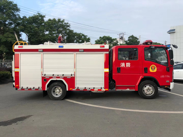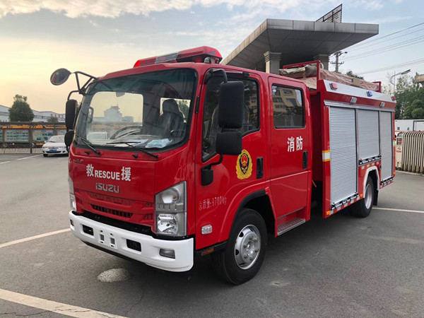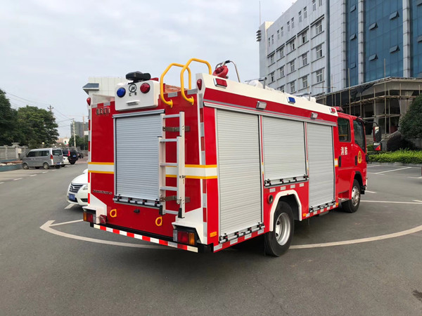 慶鈴五十鈴3噸泡沫消防車采用700P慶鈴底盤改裝,平頭雙排駕駛室,液壓翻轉,慶鈴五十鈴4HK1-TC51發動機,190馬力,國五排放,罐體容積3.1立方米;整車結構緊湊,方便靈活,動力性能好,車速高,能自由進出鄉村狹窄道路及小區,具有消防車的全套消防功能,上裝箱體的上裝骨架全部采用引進歐洲技術生產的鋁合金型材制造,整車的重量減少,機動性能和整車載重量提高。除了裝備消防水泵及器材以外,還設有較大容量的貯水罐及水槍、水炮等。可將水和消防人員輸送至火場獨立進行撲救火災。也可以從水源吸水直接進行撲救,或向其他消防車和滅火噴射裝置供水。在缺水地區也可作供水、輸水用車,主要適用于大中城鎮、鄉村狹窄街道、城市小區、繁忙的批發市場等場所的一般物質滅火,閑暇時可用于園林噴灌、道路清灑。