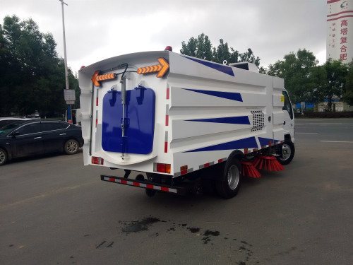 掃路車上裝配置:垃圾箱容積:8方,水箱:4方,康機140馬力副發動機,不銹鋼垃圾箱/水箱,免維護離心式風機,中置四把盤刷,后置吸盤,進口電磁閥組,駕駛室控制開關,垃圾箱舉升自卸,手動泵應急系統,無級變速自動離合器,北極星電子水泵,尾部LED箭頭燈。