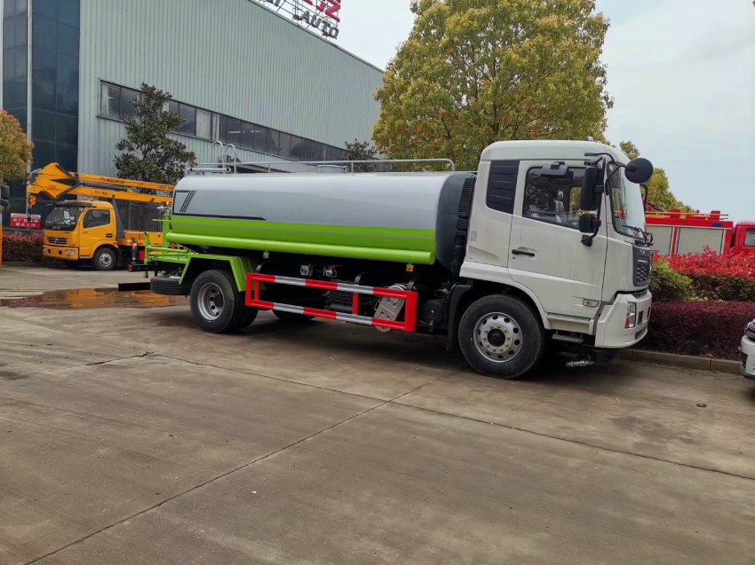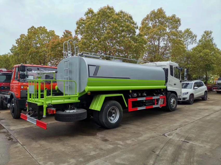 專用配置:罐體容積約12~14立方米,鋼板為4mm碳鋼Q235材質,前沖、后灑、側噴、后平臺帶綠化灑水炮,灑水炮可全方位旋轉,可連續調成直沖狀、大雨、小雨、毛毛雨;前封頭帶水位計,后平臺主管路帶1寸澆花接口,后爬梯,帶1個消防接頭,帶1個自流閥,1個過濾裝置。