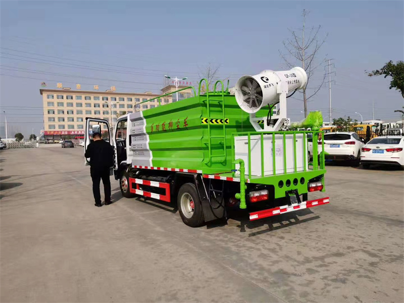 抑塵車吸程≧7米,灑水寬度≧14-16米,射程≧25-40米,引水時間<5min,流量60m3/h。前沖(噴)、后灑、帶側噴(花灑)、帶后工作平臺、平臺上安裝綠化灑水高炮(炮噴射形狀可調節:直沖、大雨、中雨、毛毛雨、霧狀、可連續調節,360°旋轉),配消防接口,自流閥,濾網,帶自吸自排功能。配備大功率專用灑水泵,泵可自吸自排,安裝過濾網,帶消防接口,可通過消防栓進水,帶自流閥,此車尾部加裝大功率農藥噴灑炮,噴灑狀態霧狀,有效射程15-45米,外部平臺帶獨立的機組。