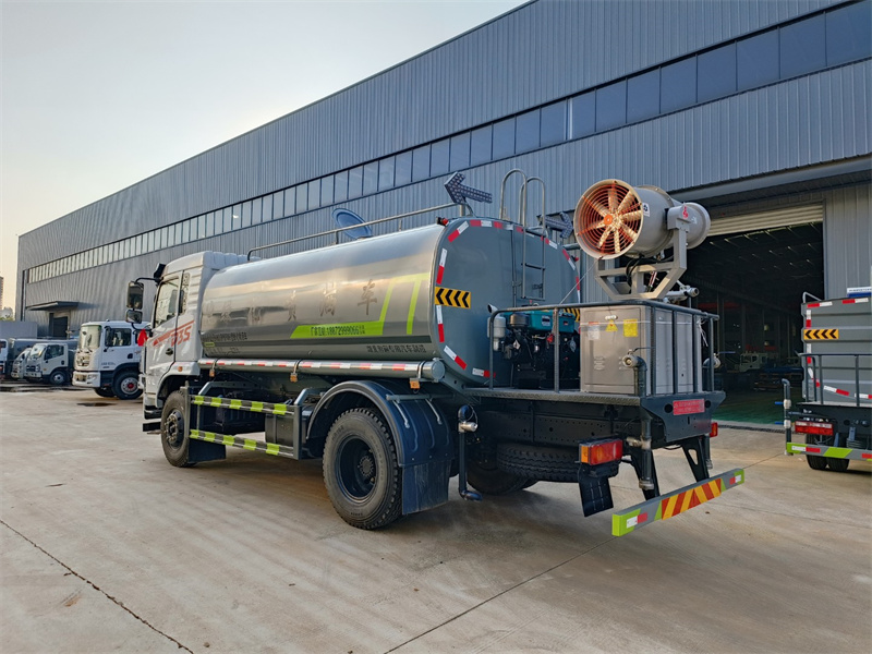 東風12噸霧炮灑水車產(chǎn)品標配前噴(鴨嘴)、后沖、后灑、側(cè)噴、后置式工作 平臺,平臺上配置綠化水炮(可 360°旋轉(zhuǎn),既可以調(diào)成柱狀,也可 以調(diào)成霧狀,更可以調(diào)成直沖狀、大雨、中雨、小雨、毛毛雨),配 備優(yōu)質(zhì)大功率專用灑水泵(可自吸自排,可從河里或池塘抽水到罐體), 取力器,雜物過濾網(wǎng),消防接口,自流球閥系統(tǒng)、取力器、球閥、濾網(wǎng) 均為國家標準產(chǎn)品,主管道加粗,法蘭墊、法蘭盤加厚,大通徑球閥。 整體具備性能優(yōu)良安全可靠、效率高、流量大、維修方便等特點