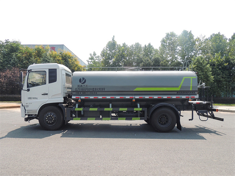 東風天錦15噸灑水車產品標配前噴(鴨嘴)、后沖、后灑、側噴、后置式工作 平臺,平臺上配置綠化水炮(可 360°旋轉,既可以調成柱狀,也可 以調成霧狀,更可以調成直沖狀、大雨、中雨、小雨、毛毛雨),配 備優質大功率專用灑水泵(可自吸自排,可從河里或池塘抽水到罐體), 取力器,雜物過濾網,消防接口,自流球閥系統、取力器、球閥、濾網 均為國家標準產品,主管道加粗,法蘭墊、法蘭盤加厚,大通徑球閥。 整體具備性能優良安全可靠、效率高、流量大、維修方便等特點