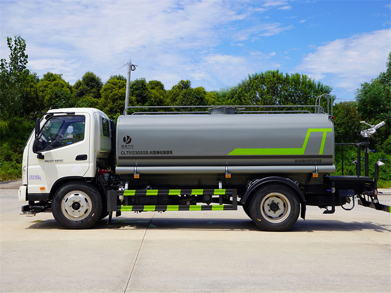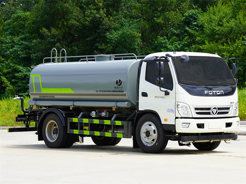 福田奧鈴8-10噸灑水車產品標配前噴(鴨嘴)、后沖、后灑、側噴、后置式工作 平臺,平臺上配置綠化水炮(可 360°旋轉,既可以調成柱狀,也可 以調成霧狀,更可以調成直沖狀、大雨、中雨、小雨、毛毛雨),配 備優質大功率專用灑水泵(可自吸自排,可從河里或池塘抽水到罐體), 取力器,雜物過濾網,消防接口,自流球閥系統、取力器、球閥、濾網 均為國家標準產品,主管道加粗,法蘭墊、法蘭盤加厚,大通徑球閥。 整體具備性能優良安全可靠、效率高、流量大、維修方便等特點